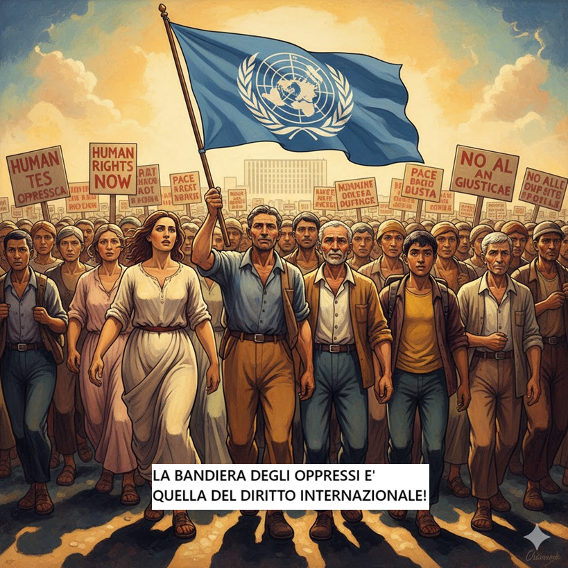 con una riflessione in appendice: la bandiera di tutti gli oppressi è quella del diritto internazionale, quella dell'ONU!